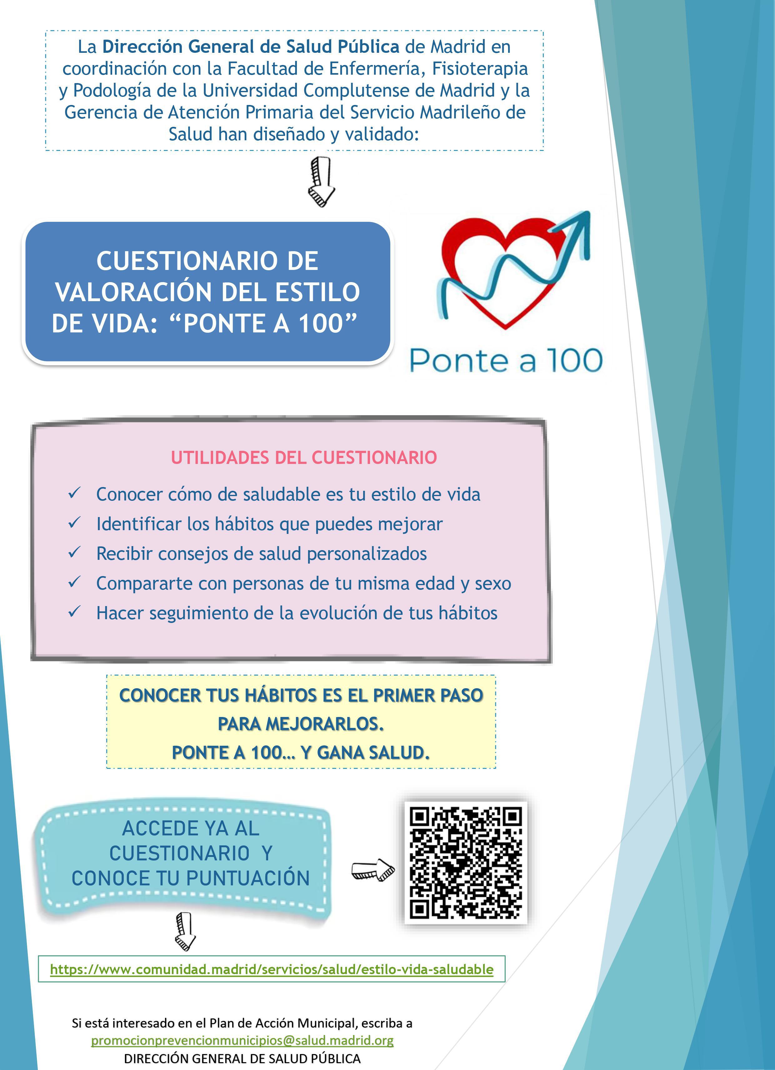 El cuestionario Ponte a 100 permite evaluar y cuantificar con un valor numérico de 0 a 100 el estilo de vida de las personas adultas.