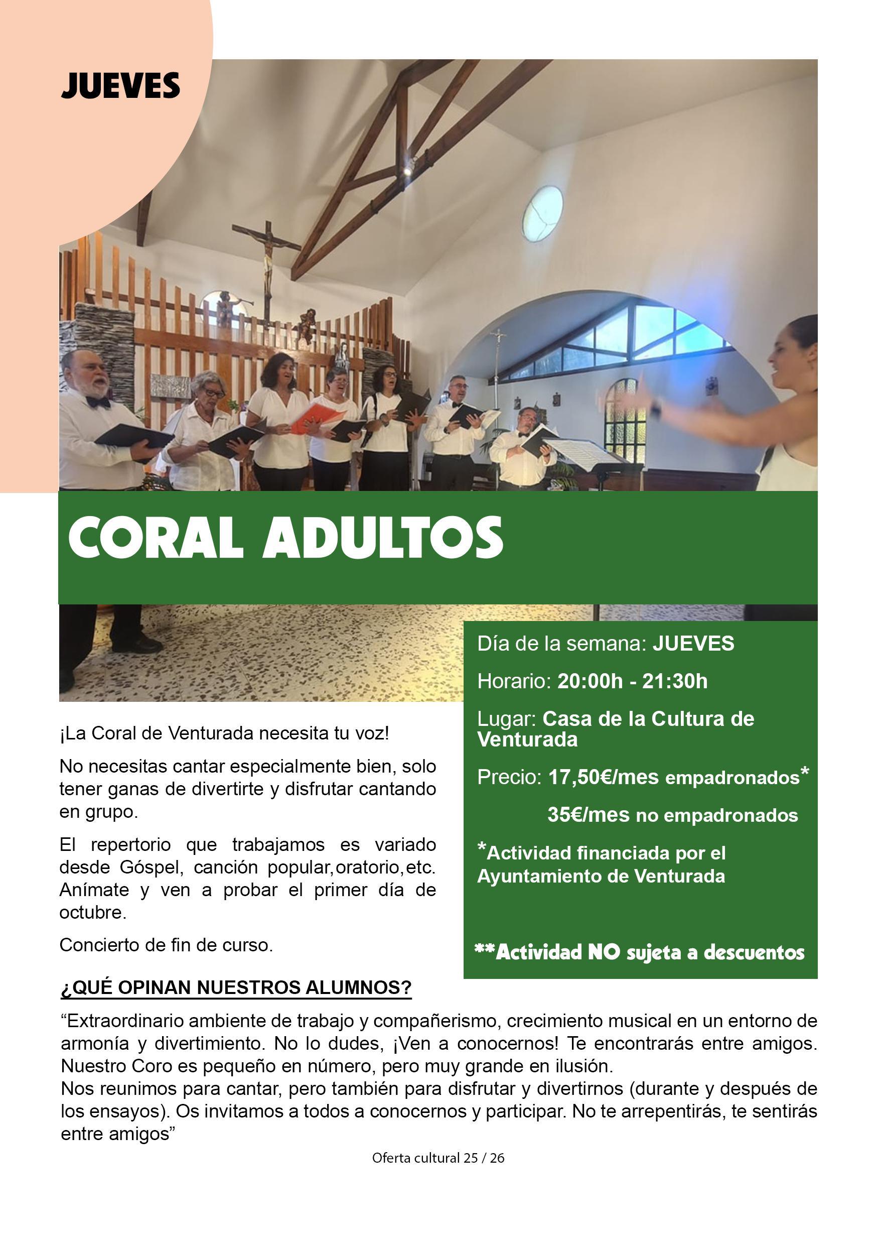 Coral Adultos Casa de la cultura de Venturada Itinerario Email Llamar + Info Incripciones: https://actividades.venturada.org/ Itinerario Email Llamar + Info