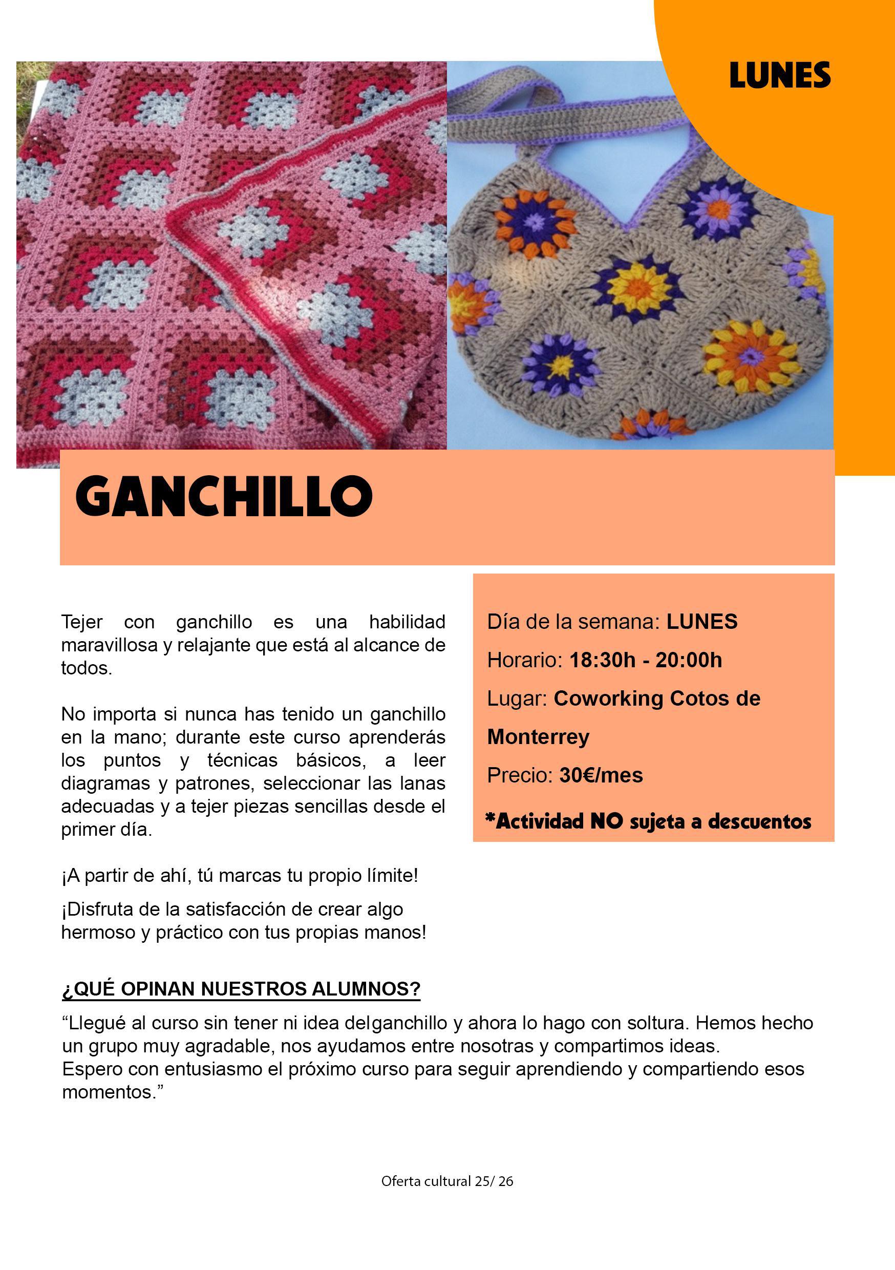 Tejer a ganchillo Urb. los Cotos de Monterrey M Itinerario Email Llamar + Info Incripciones: https://actividades.venturada.org/ Itinerario Email Llamar + Info