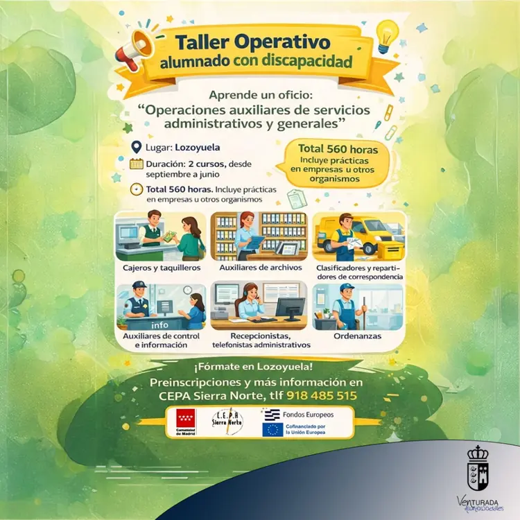 Desde el CEPA Sierra Norte nos informan de este curso gratuito. Aprende un oficio con este curso equivalente a una cualificación profesional grado C nivel 1.Preinscripciones en CEPA Sierra Norte, APAFAM y Ayuntamiento de Lozoyuela Navas SieteiglesiasMás información en el teléfono 91 848 55 15La entr