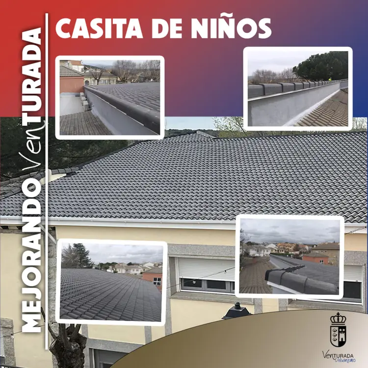 Finalizan las obras de mejora en la Casita de NiñosEl Ayuntamiento de Venturada informa de que han finalizado las obras de construcción del tejado en una parte del edificio de la Casita de Niños, una actuación necesaria para solucionar los problemas de humedades que venían produciéndose, especialmen