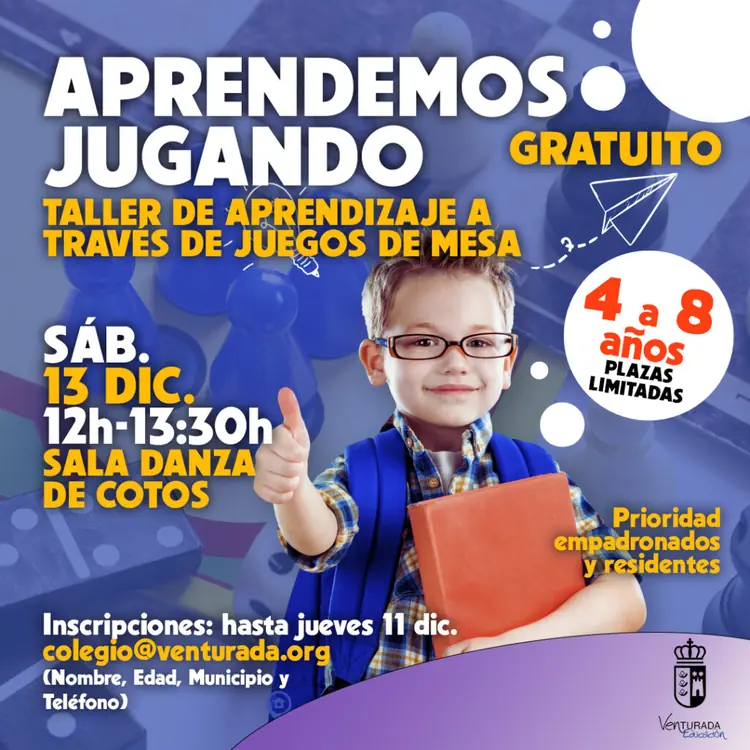 ¡Porque jugando se aprende mejor!Objetivo del taller: A través de juegos de mesa y movimiento, los niños desarrollarán: Lenguaje en todos sus componentes Funciones ejecutivas (atención, memoria, planificación…) Razonamiento lógico-matemático Coordinación y movimientoLos juegos de mesa favorecen el b